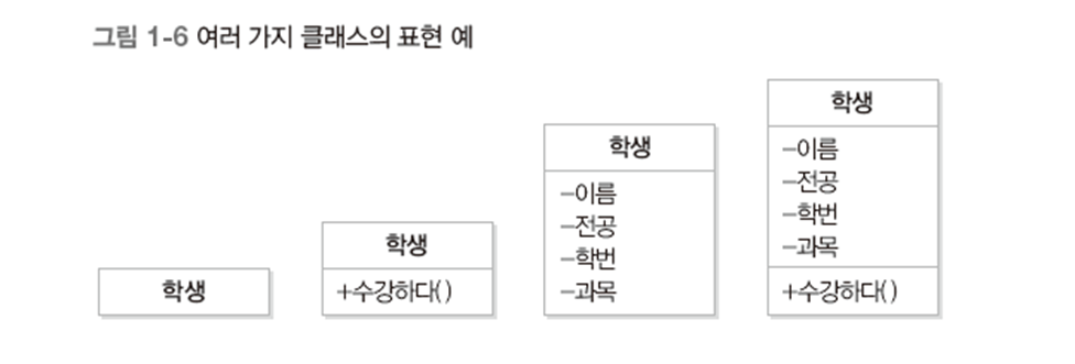 - 가장 윗부분: 클래스 이름/ 중간 부분: 속성 / 마지막 부분: 연상
